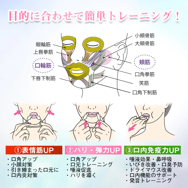 美容効果以外にも口が閉じやすくなるので鼻からの呼吸がスムーズにな口内免疫力を高めることが可能です。